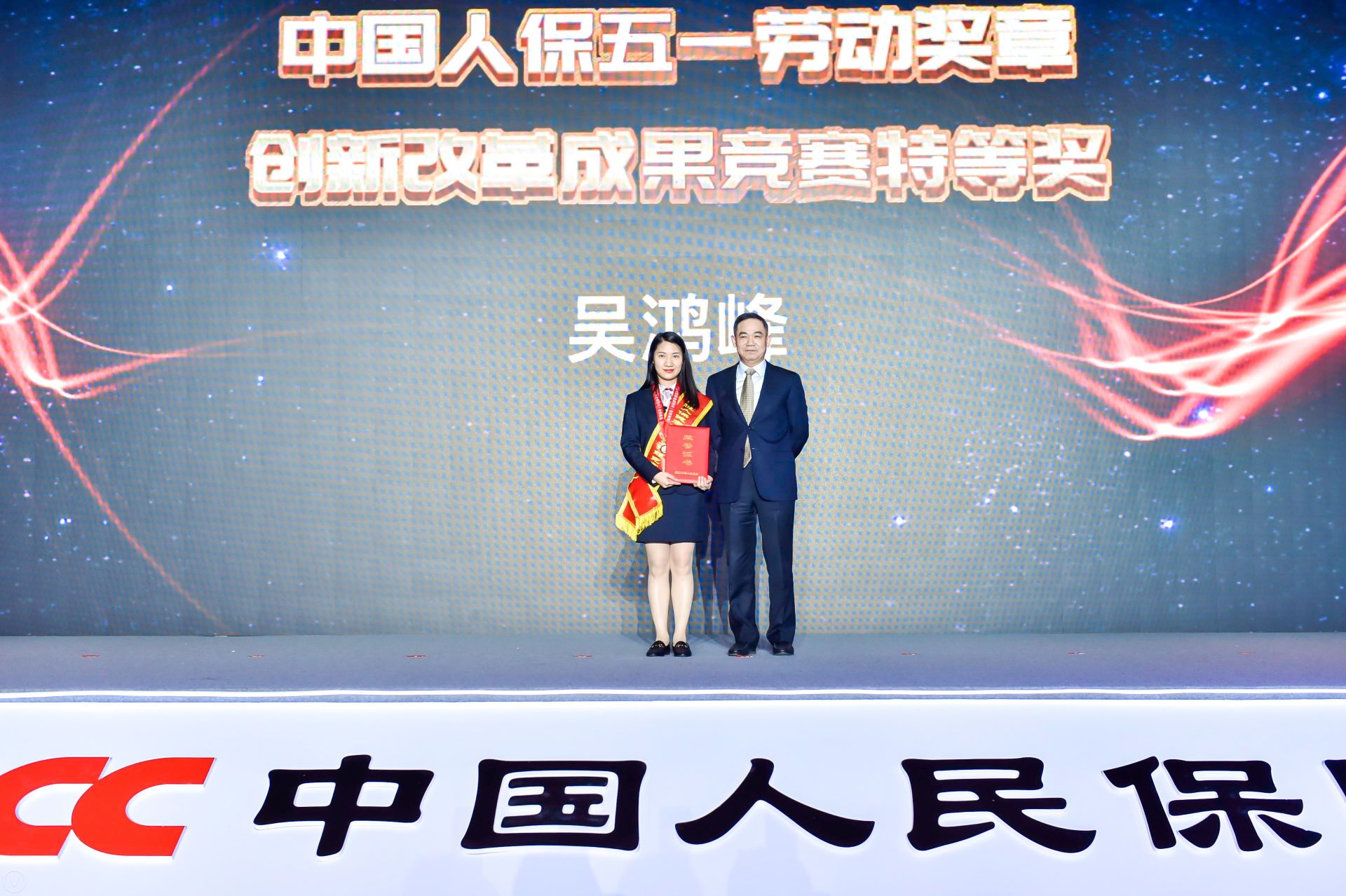 (集团公司肖建友副总裁、于泽副总裁,韩可胜总裁助理及人保健康总裁华山颁奖)